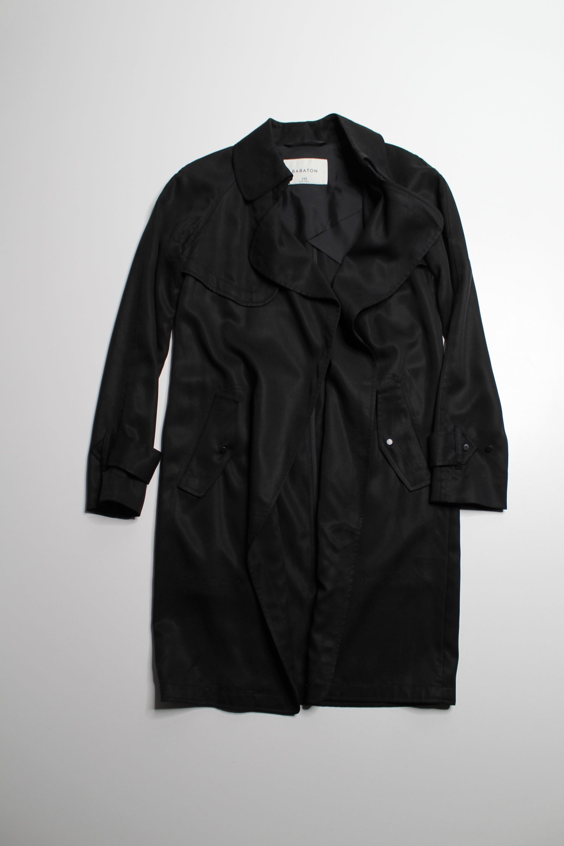 Aritzia Babaton black open front 'lawson' trench coat, size xxs (loose fit) (fits xxs/xs)