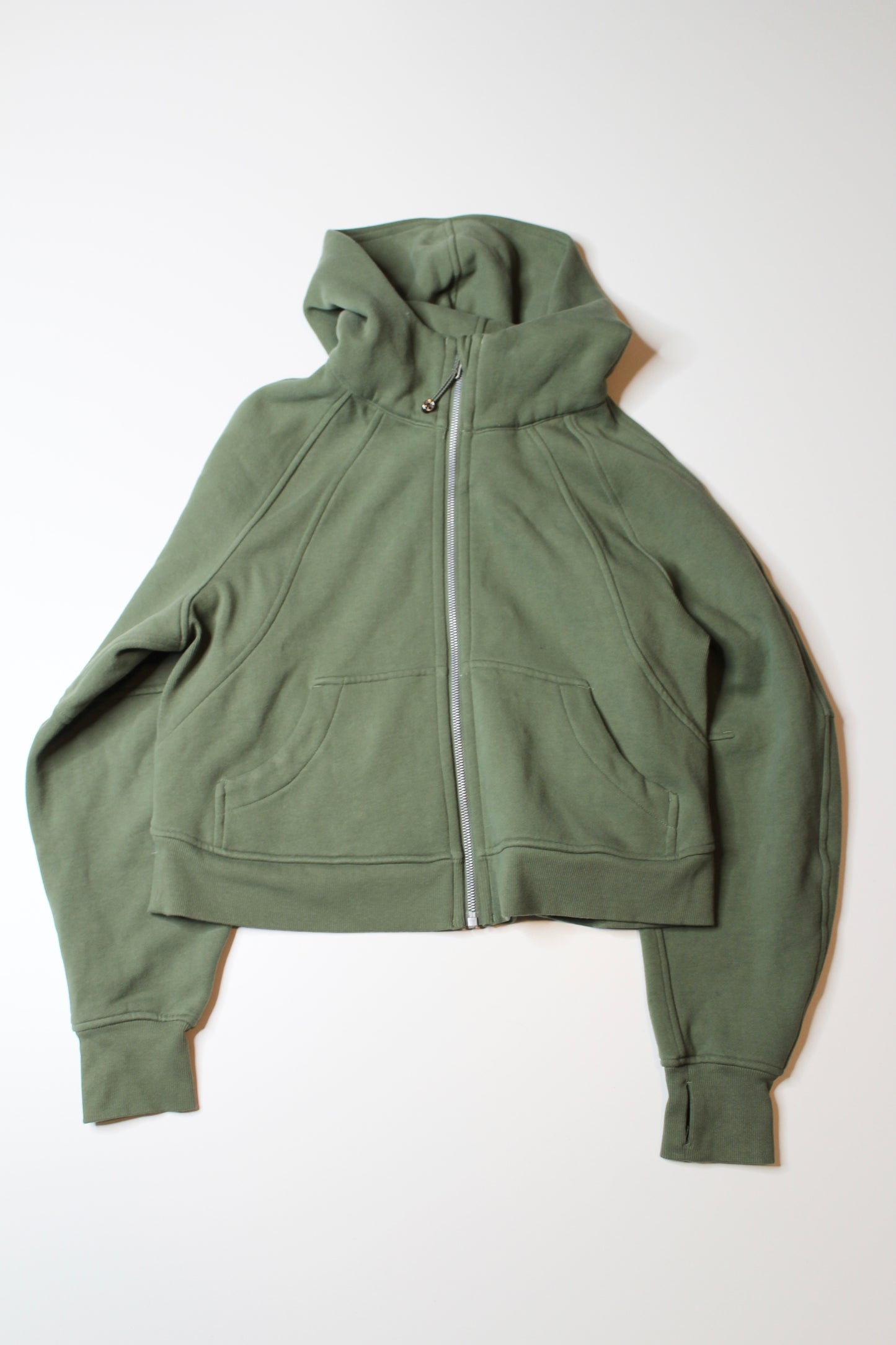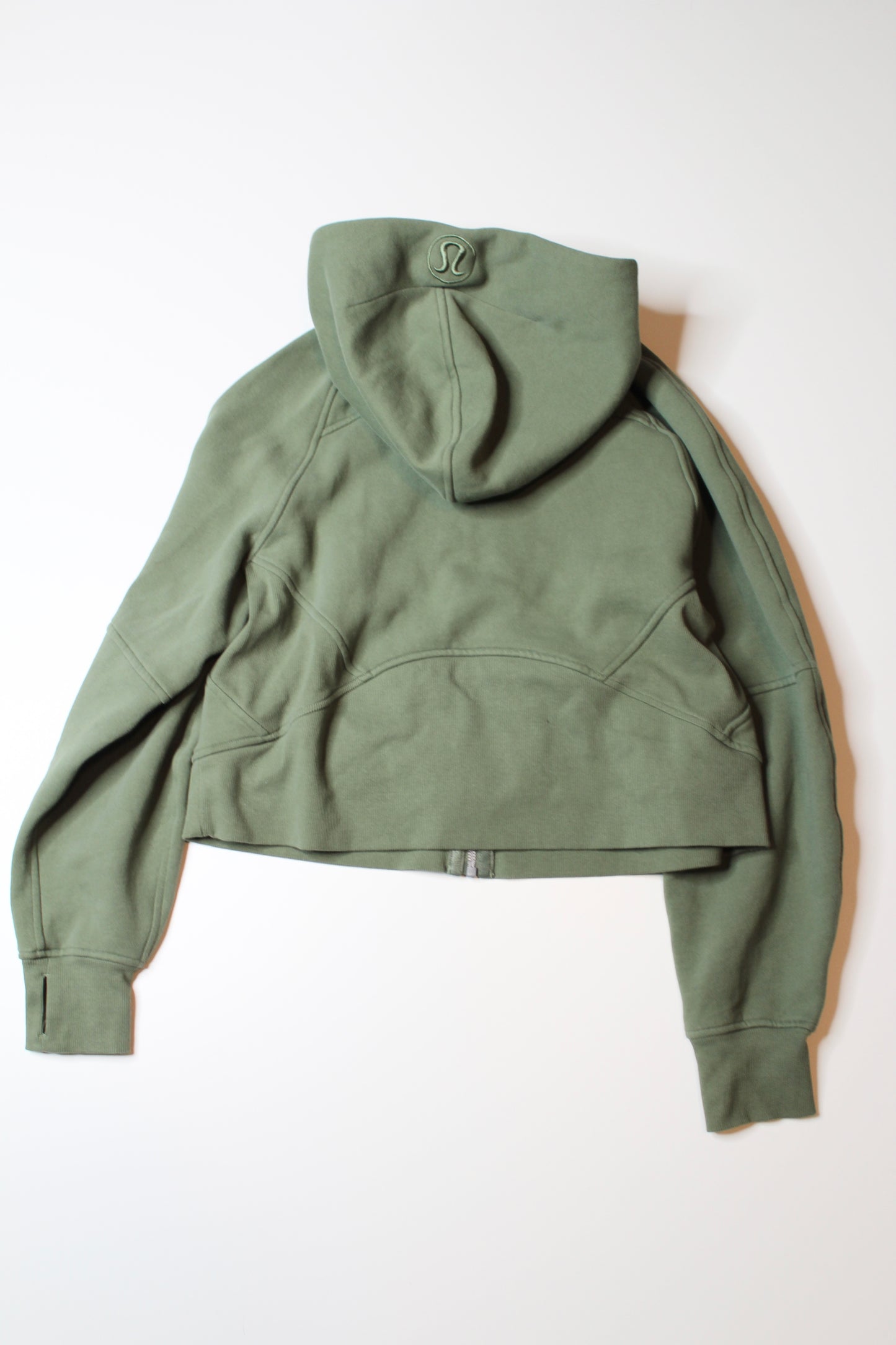 Lululemon green twill full zip oversized crop scuba hoodie, size xs/s