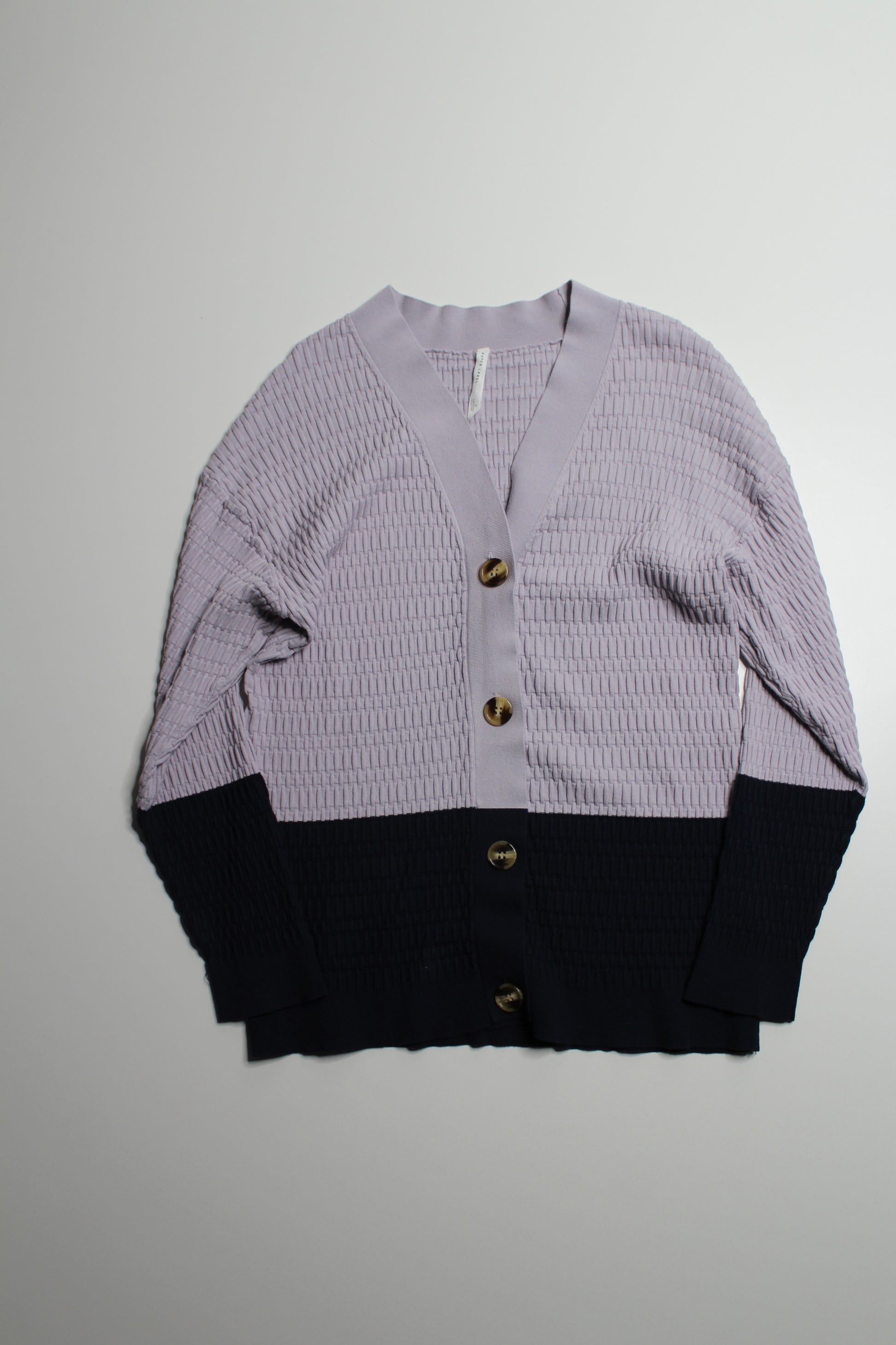 Paper Label lavender color block textured button stretch cardigan, size 3 (fits like medium)