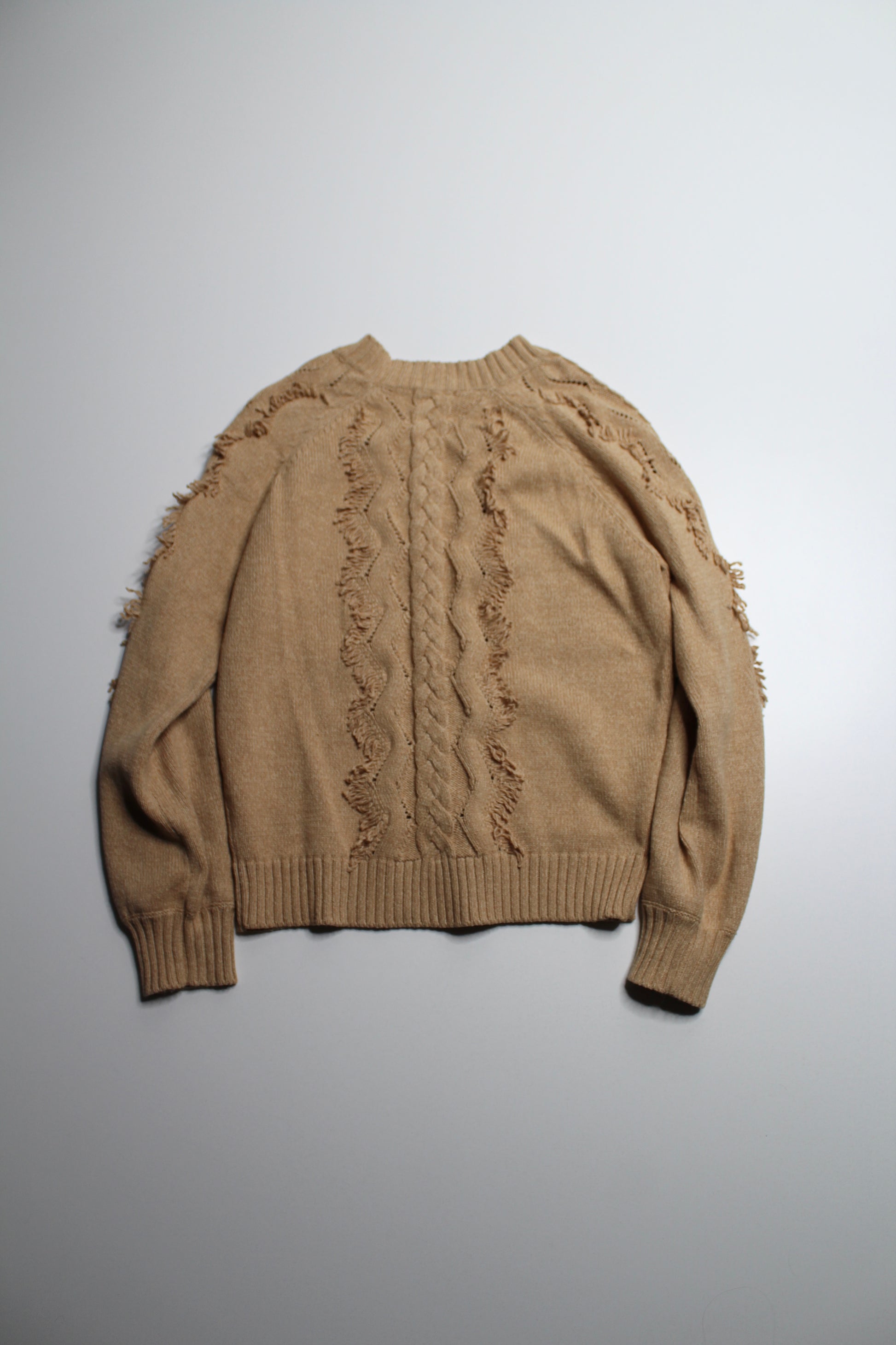 Rails camel ‘Francis fringe’ cable knit sweater, size small