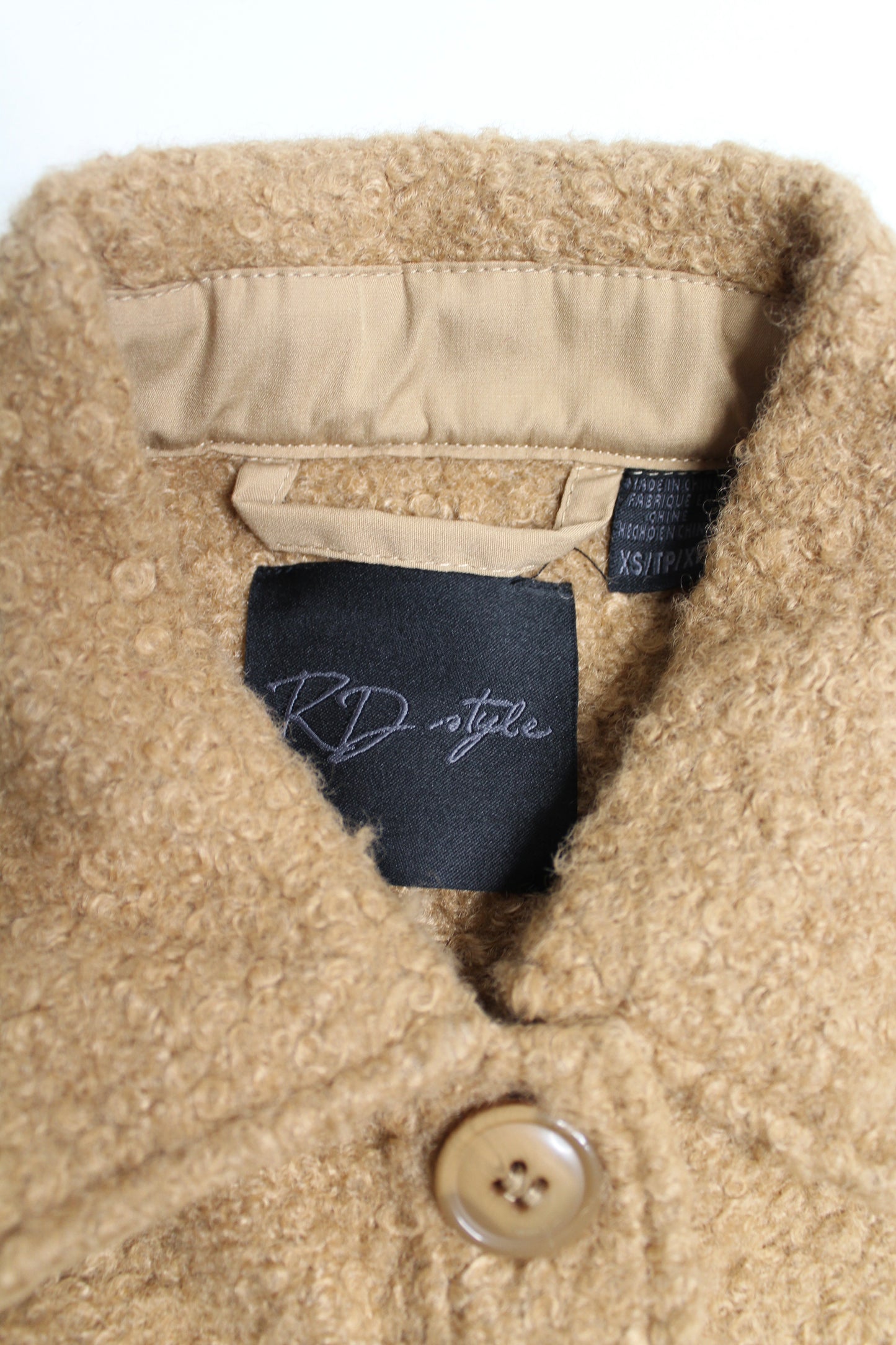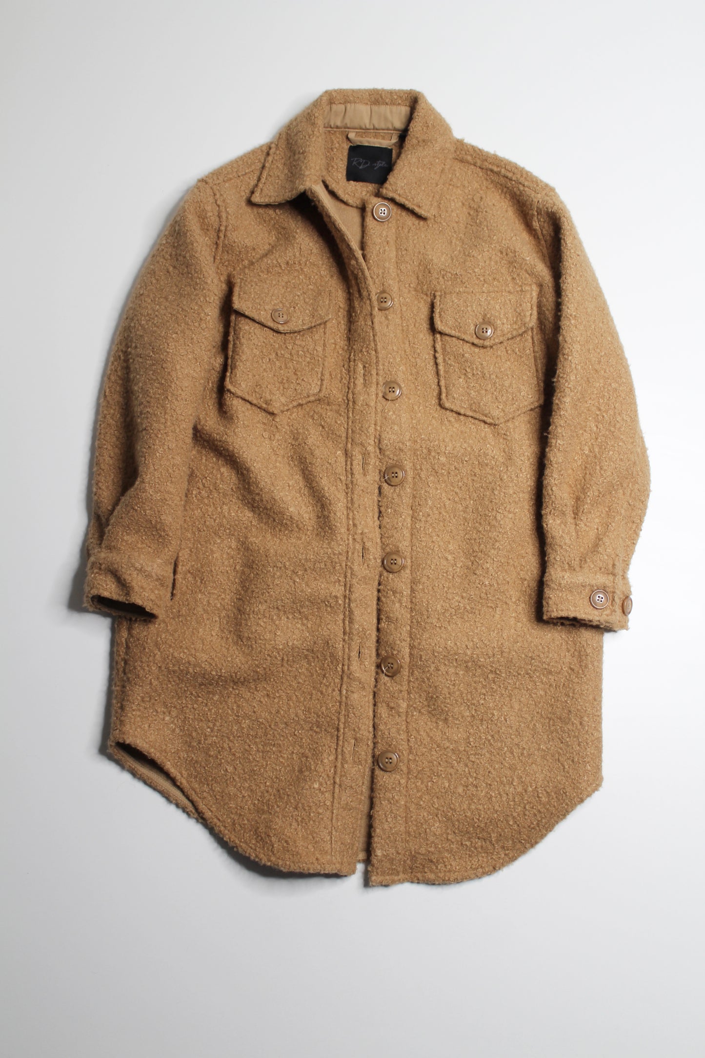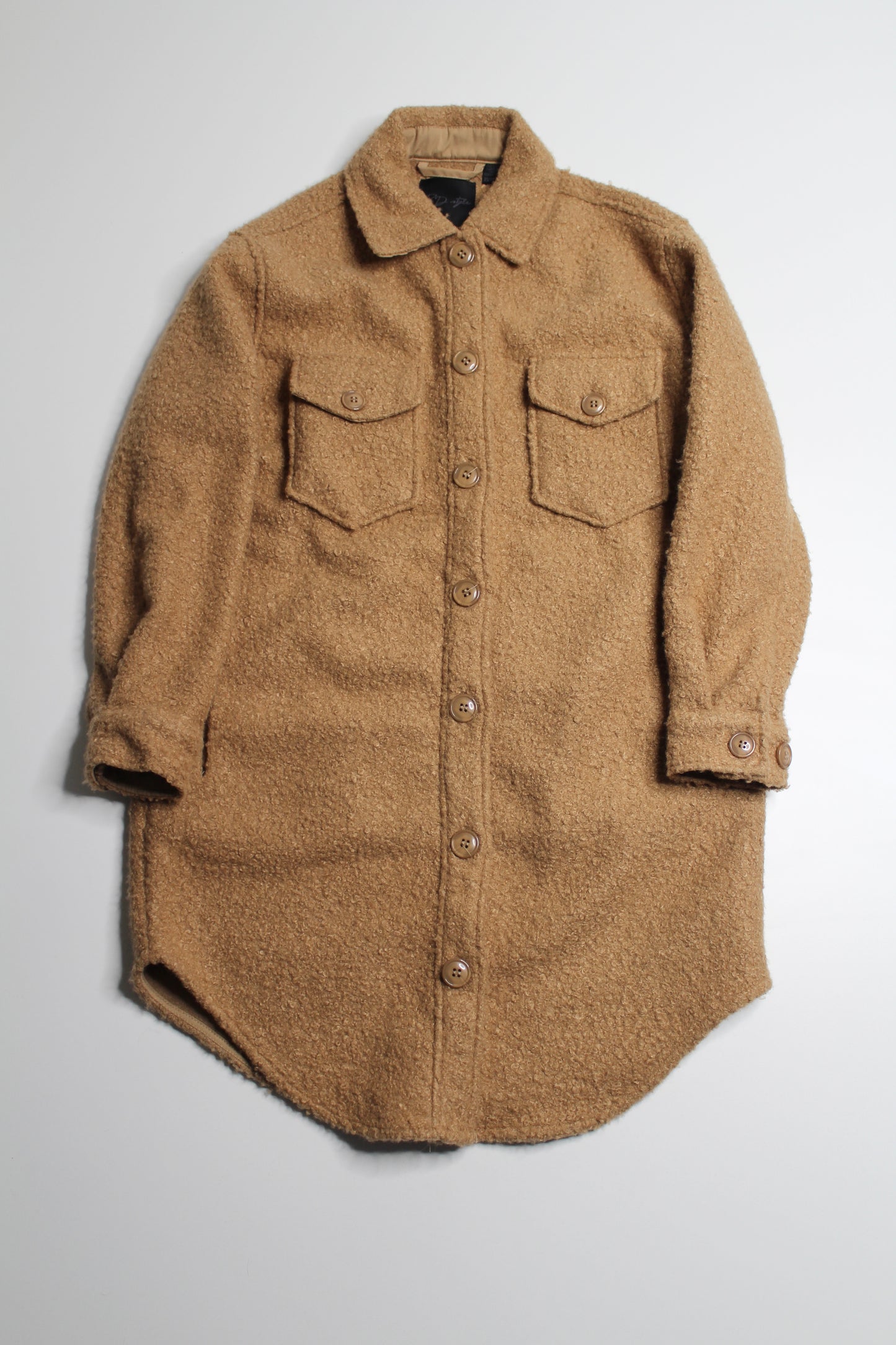 RD Style camel teddy shacket, size xs (oversized fit) (sale: 50% off)