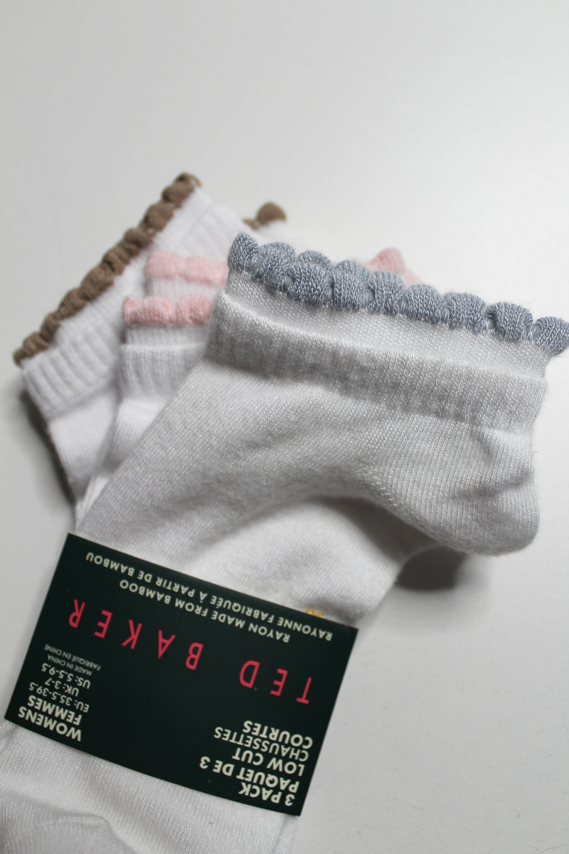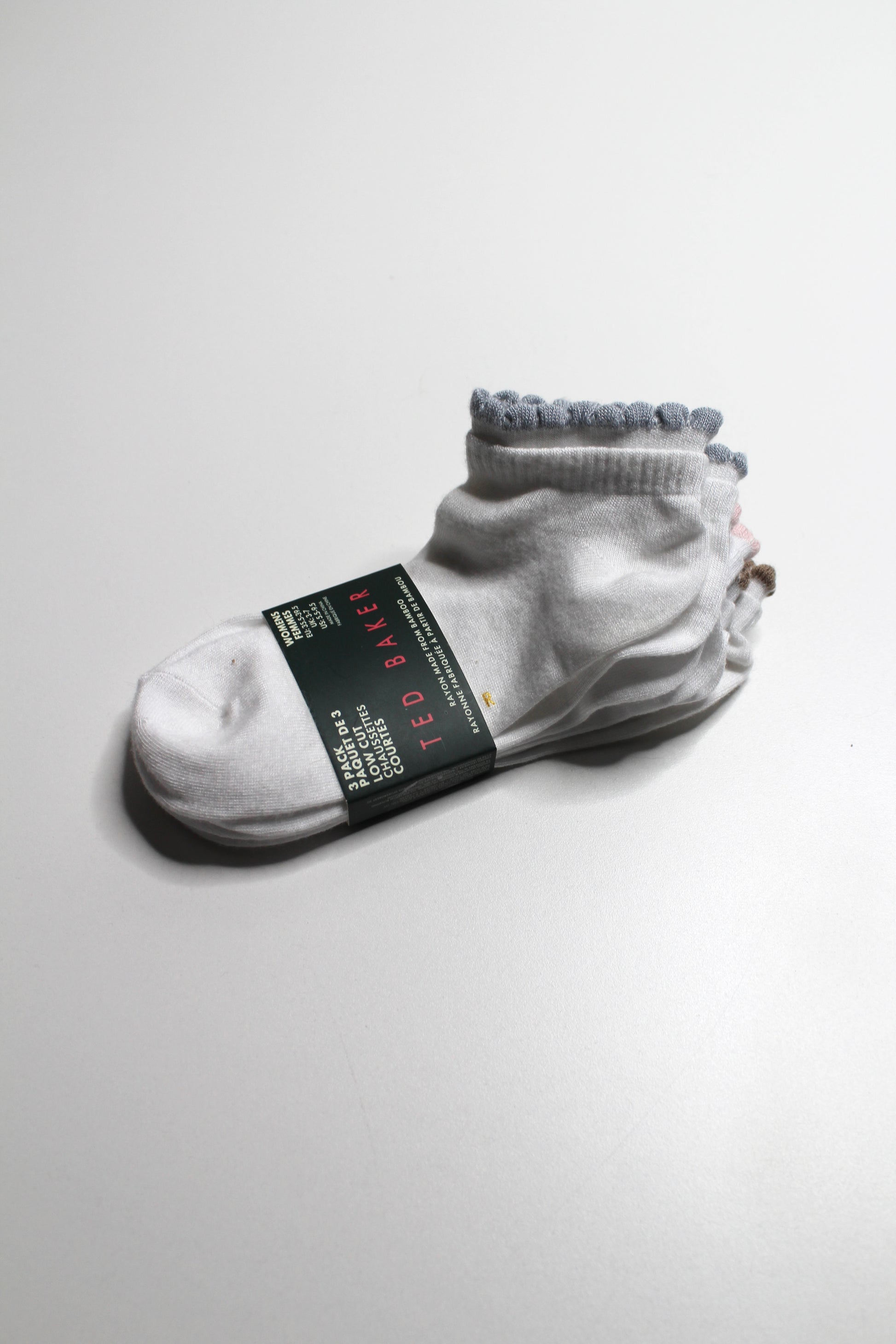 Ted Baker 3 pack double cuff ankle socks, size 5.5-9.5 *new with tags